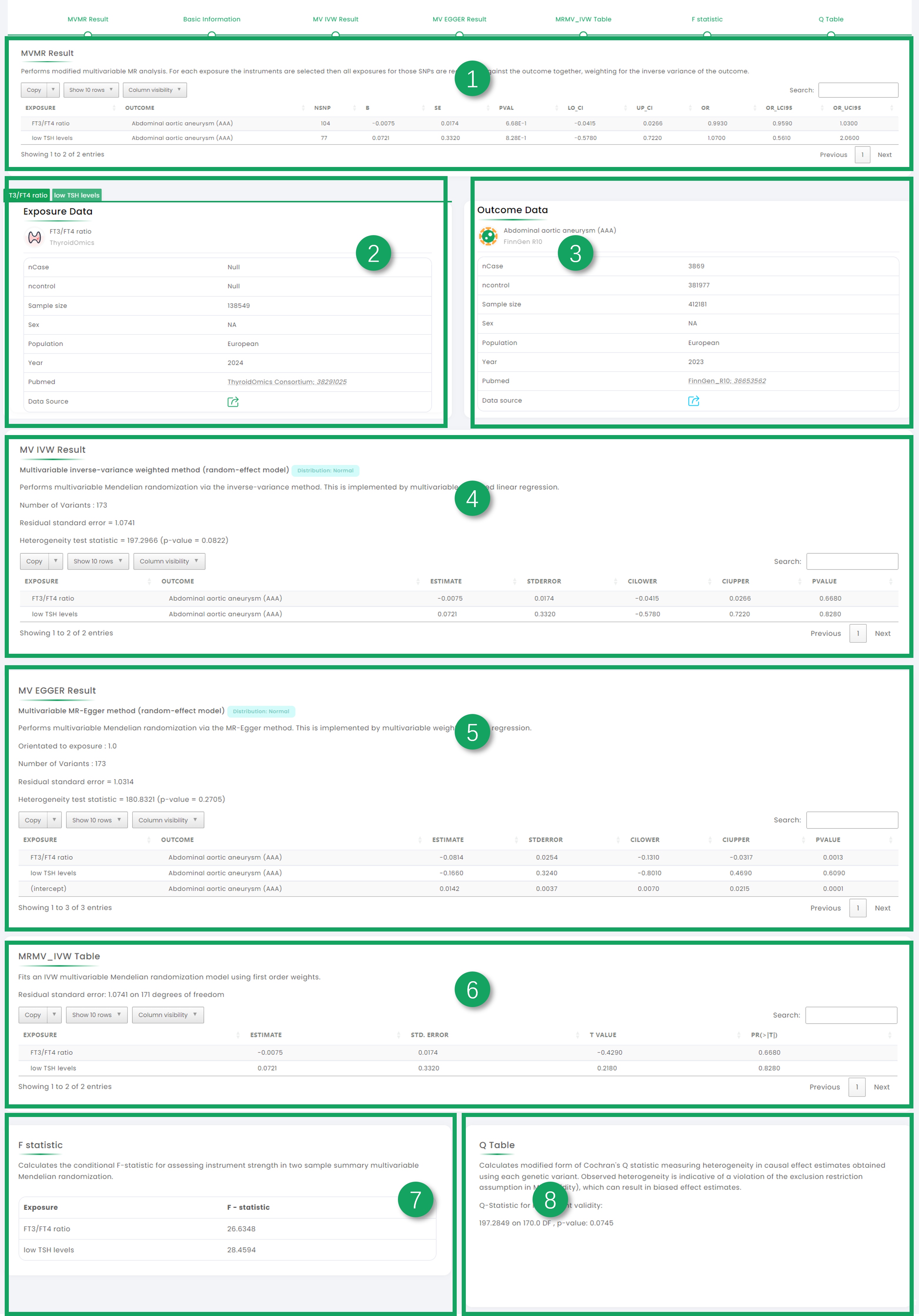 5. This panel displays basic information about the exposure datasets built into MRdb, and you can click on any exposure dataset to perform univariate/multivariate Mendelian randomization analysis.